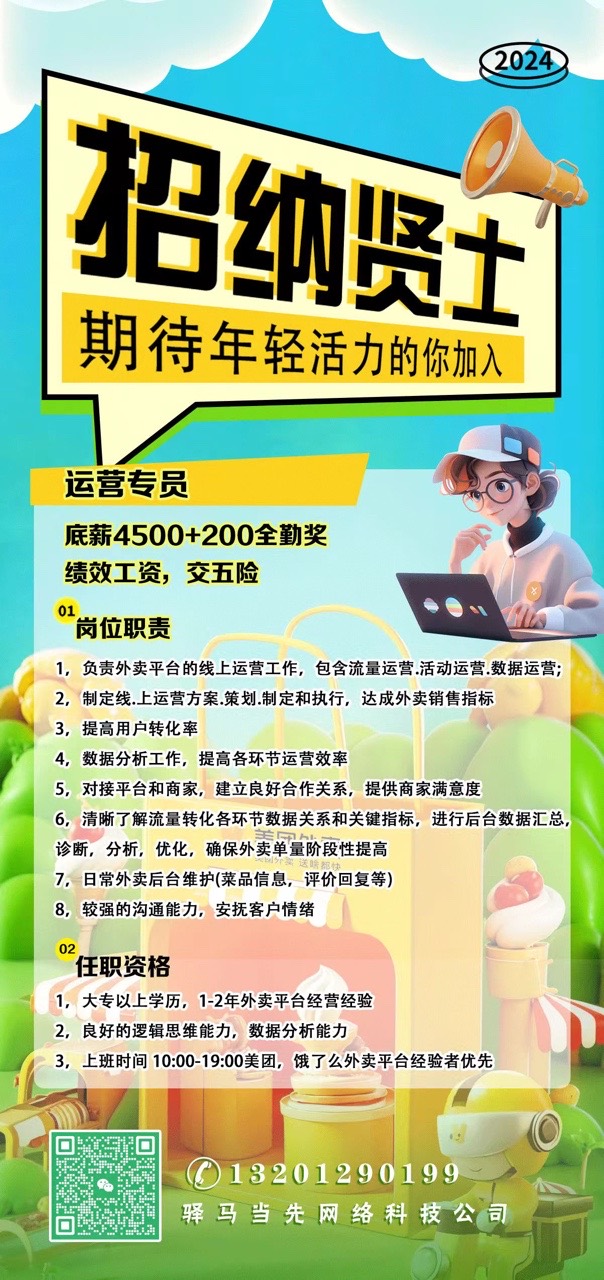 3、上班时间10:00-19:00美团,饿了么外卖平台经验者优先