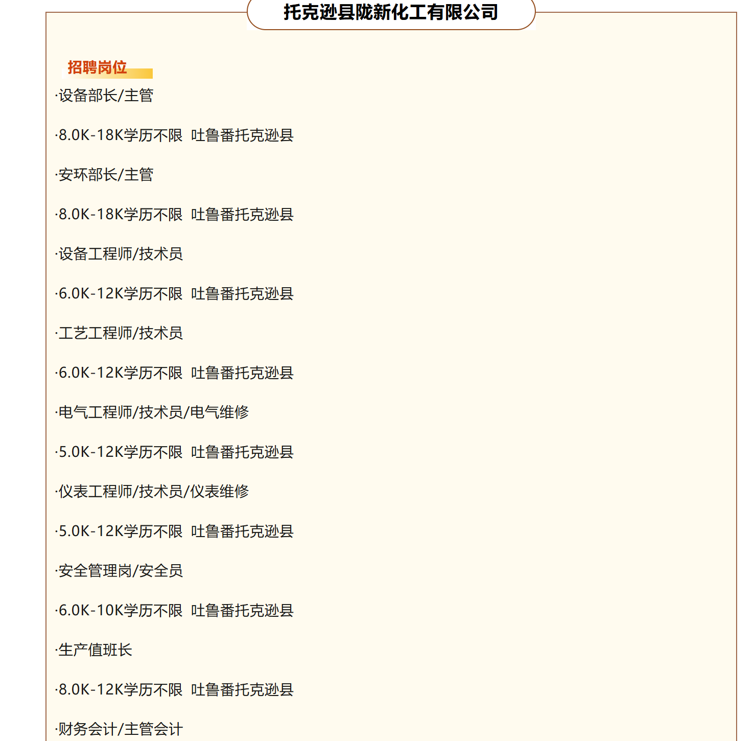 托克逊县风城国营牧业有限公司面向社会招聘工作人员
