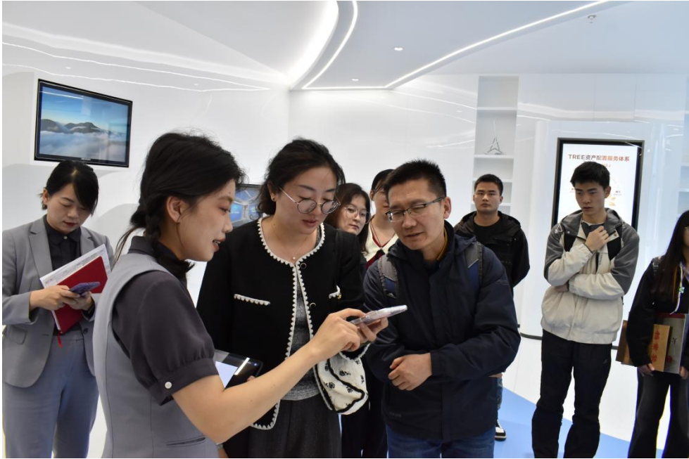 在招行银行工作人员的引导下,学院师生参观了数字金融展厅,现场体验了智能风控、数字金融等前沿技术应用。招行讲解团队现场演示了金融大数据分析平台,并结合数学建模案例讲解技术在业务中的实际应用。学生代表纷纷表示,此次参访不仅拓宽了行业视野,更深刻认识到数学理论在金融科技中的核心价值,明确了未来职业发展方向。